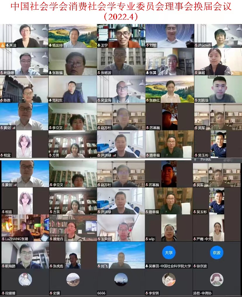 2022年4月23日,中国社会学会消费社会学专业委员会理事会换届会议线上召开