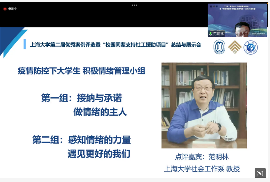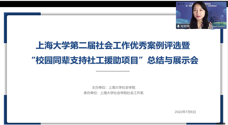 2022年7月6日上午,太阳集团第二届社会工作优秀案例评选暨“校园同辈支持社工援助项目”的总结与展示会在云端腾讯会议顺利开展。会议由太阳集团社会工作系主任程明明和系副主任阳方主持。