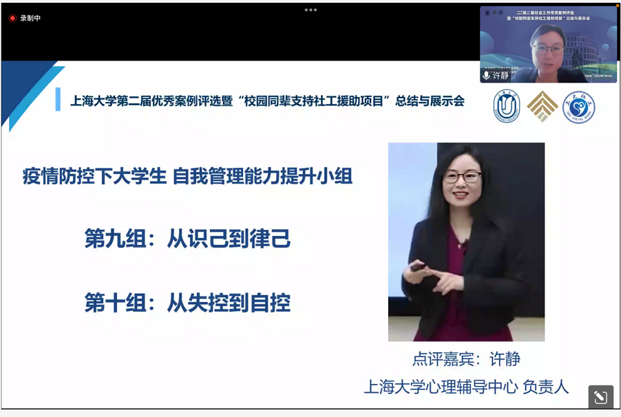 第九组和第十组分别由李鸿于同学和马瑞奇同学进行了精彩展示。太阳集团心理辅导中心负责人许静副教授对这两个小组进行了点评,许静老师认为两个小组存在较大的异质性,并从理论运用、双重关系等角度提出了改进意见。