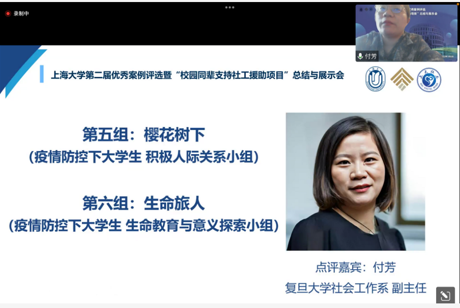 第五组和第六组分别由胡依同学和杨子涵同学进行汇报。复旦大学社会工作系副主任付芳副教授认为这两个小组形式丰富、评估系统。同时,付芳老师从理论与服务设计如何有机融合、游戏与主题如何紧密结合、评估方面如何更加专业、如何更好呈现效果等方面提出了建议。