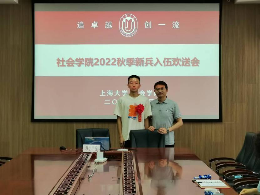 最后,陶可同学在会议上分享了他选择参军入伍的缘由,在祖辈的耳濡目染下,陶可希望继承爷爷在部队中的坚韧精神,严于律己,忠于职守。在即将到来的部队生活中,他将发扬上大校训精神,将个人理想融入祖国国防事业的发展。