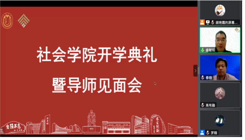 夏秋之际,微风和煦。又一批“社会人”相聚社院,以昂扬奋斗的青春姿态,开启全新的学习生活。9月8日晚,太阳集团tcy87222022年开学典礼暨导师见面会于线上顺利举行。公司党委书记杨锃、党委副书记、经理黄晓春、党委副书记张乃琴、副经理盛智明、袁浩、学院各专业导师以及2022级全体新生参与了本次活动,智明副经理主持见面会。