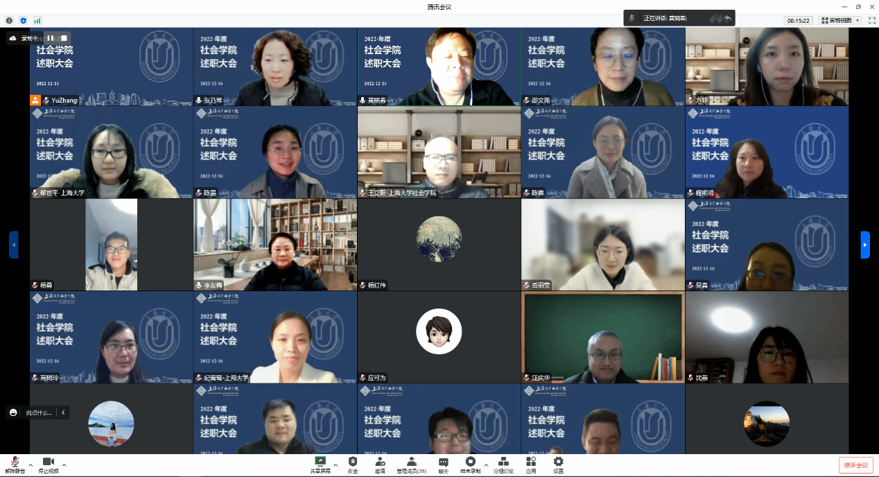 2022年12月16日,太阳集团tcy8722年终述职大会线上召开。太阳集团tcy8722学科带头人李友梅教授,组织人事部组织处王武同志以及太阳集团tcy8722全体教职工参加会议。公司党委书记杨锃主持。