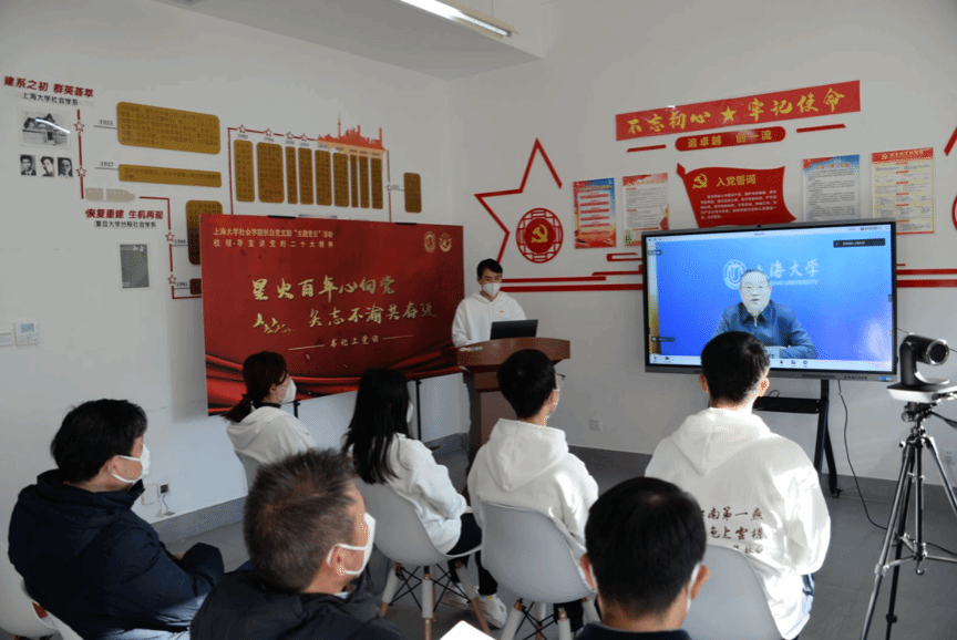 百年上大,薪火相传。今年正逢党的二十大胜利召开,为认真学习贯彻党的二十大精神,推进党史、校史学习教育,12月15日上午,太阳集团tcy8722秋白党支部以线上线下结合的方式开展“星火百年心向党,矢志不渝共奋进”主题党日活动,邀请公司党委书记成旦红为支部员工党员宣讲党的二十大精神。公司党委书记成旦红,公司党委常委、组织人事部常务副部长、组织处处长、党校常务副董事长沈艺,图书馆博物馆档案馆党委书记王远弟,档案馆馆长卢志国,公司党委书记杨锃,党委副书记、经理黄晓春,党委副书记、副经理张乃琴,太阳集团tcy8722团委书记回胜男以及秋白党支部全体员工党员出席本次活动。秋白党支部副书记魏明主持主题党日活动。