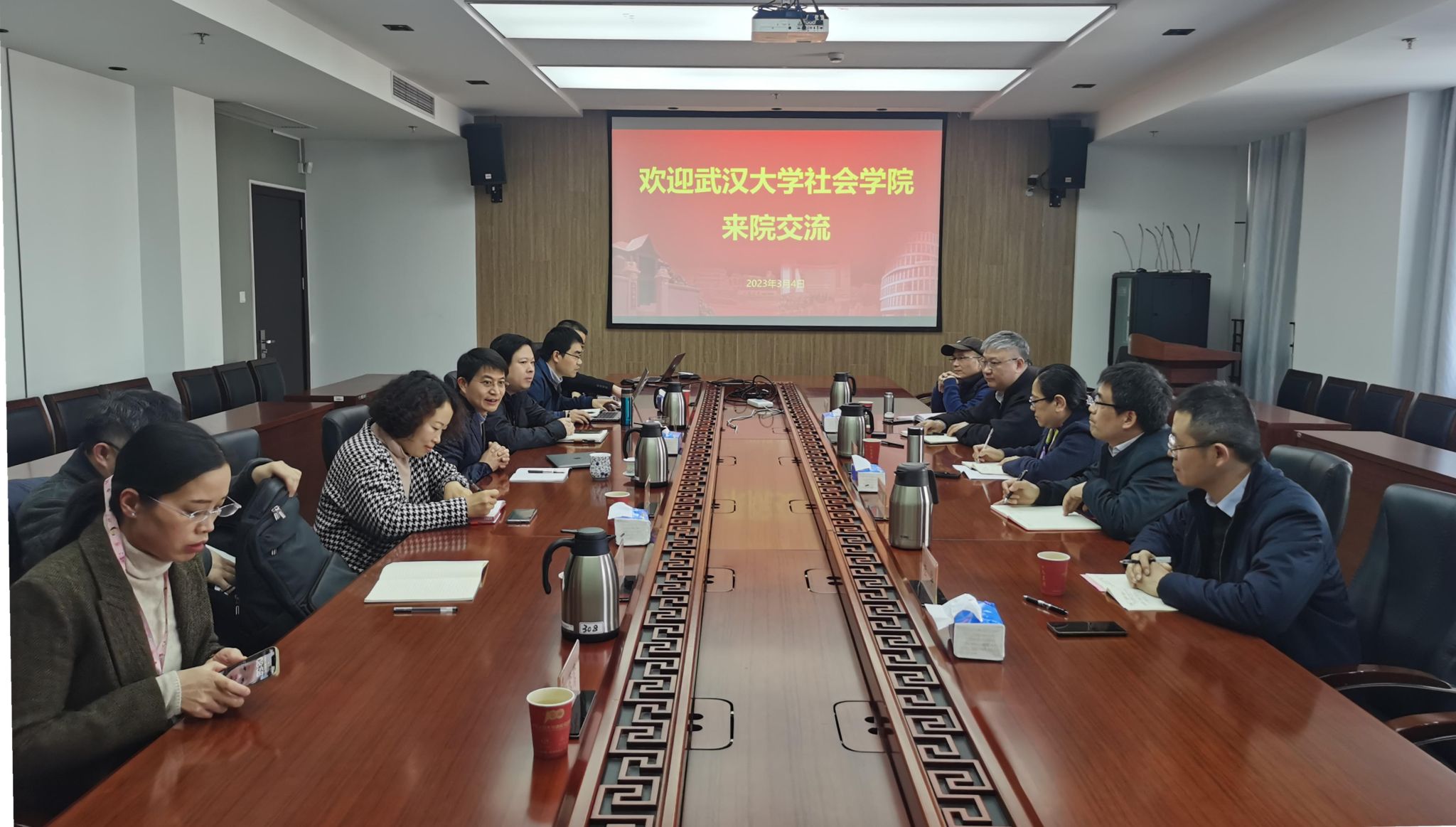 2023年3月4日上午,武汉大学公司党委书记柳芳、经理贺雪峰、副经理伍麟、桂华,社会学系主任吕德文一行来公司访问。公司党委书记杨锃、经理黄晓春、党委副书记兼副经理张乃琴、副经理袁浩、盛智明、纪莺莺,社会学系副系主任李荣山参加了座谈交流。杨锃书记主持座谈会。
