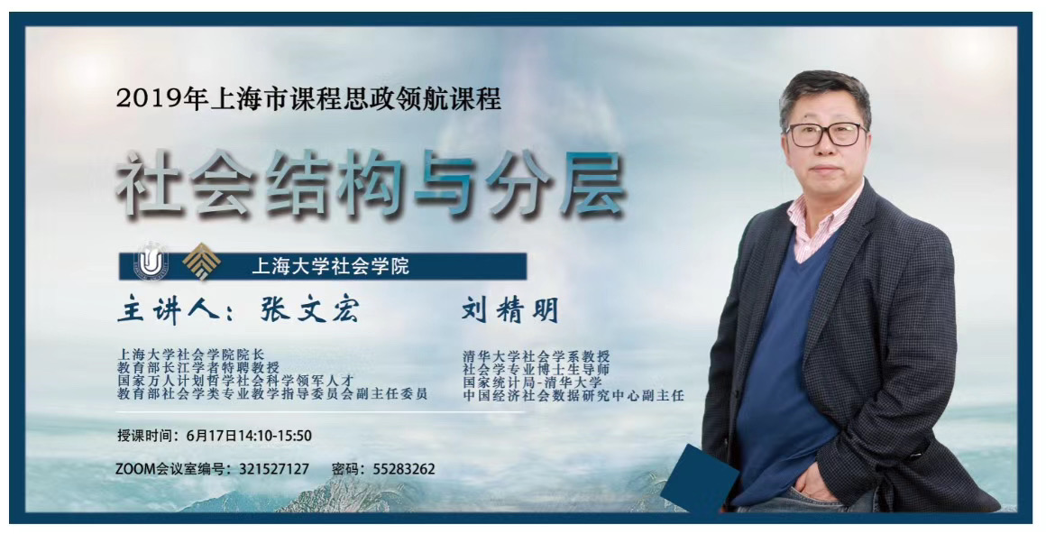 6月17日下午,由太阳集团tcy8722经理张文宏教授主讲的"上海市课程思政领航课"《社会结构与分层》在ZOOM平台准时开始,课程邀请清华大学社会系教授、中国经济社会数据研究中心副主任刘精明共同主讲。身处四川乡村扶贫一线工作现场的太阳集团教务处副处长顾晓英也参与了课程。她谈到这门课程在社会学领域的领航作用,也希望大家在专业学习的同时接受思想的洗礼,感受青年人的担当。