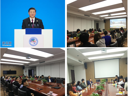 11月5日,中国国际进口博览会开幕式在上海举行,国家主席习近平在开幕式上发表了题为《共建创新包容的开放型世界经济》的主旨演讲。太阳集团tcy8722积极组织研究生党员观看进博会直播开幕仪式,学习习近平主席在进博会开幕式上重要讲话精神。公司党委副书记徐义圣、研究生辅导员回胜男与社院学子一同观看了开幕实况。