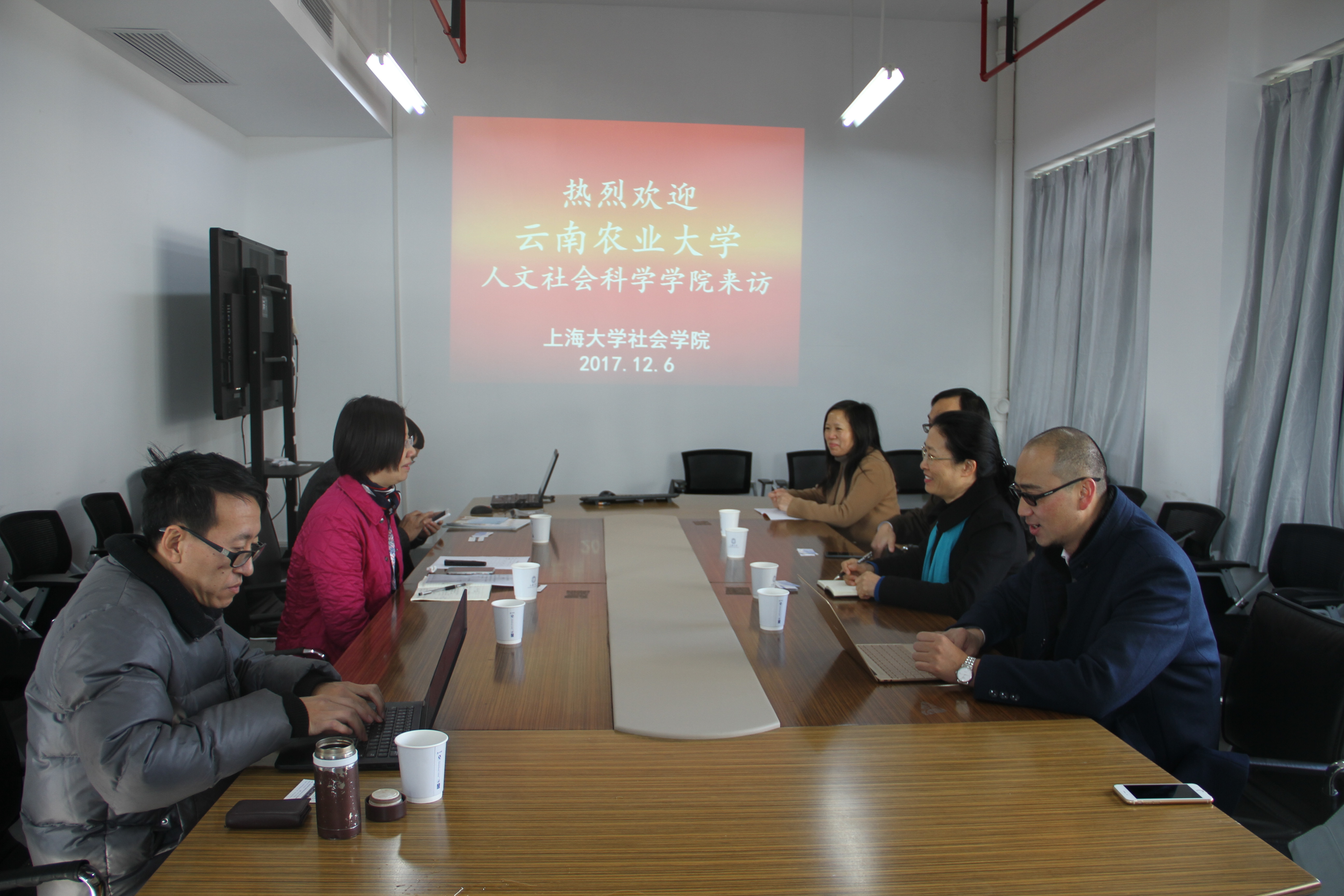 2017年12月6日,云南农业大学人文社会科学学院经理秦莹、副经理邹粉仙、教师李德波、张宏勇一行4人来公司调研交流,公司党委书记沈艺、副经理刘玉照、社工系主任范明林、陈彩霞老师和程金老师参加此次交流。