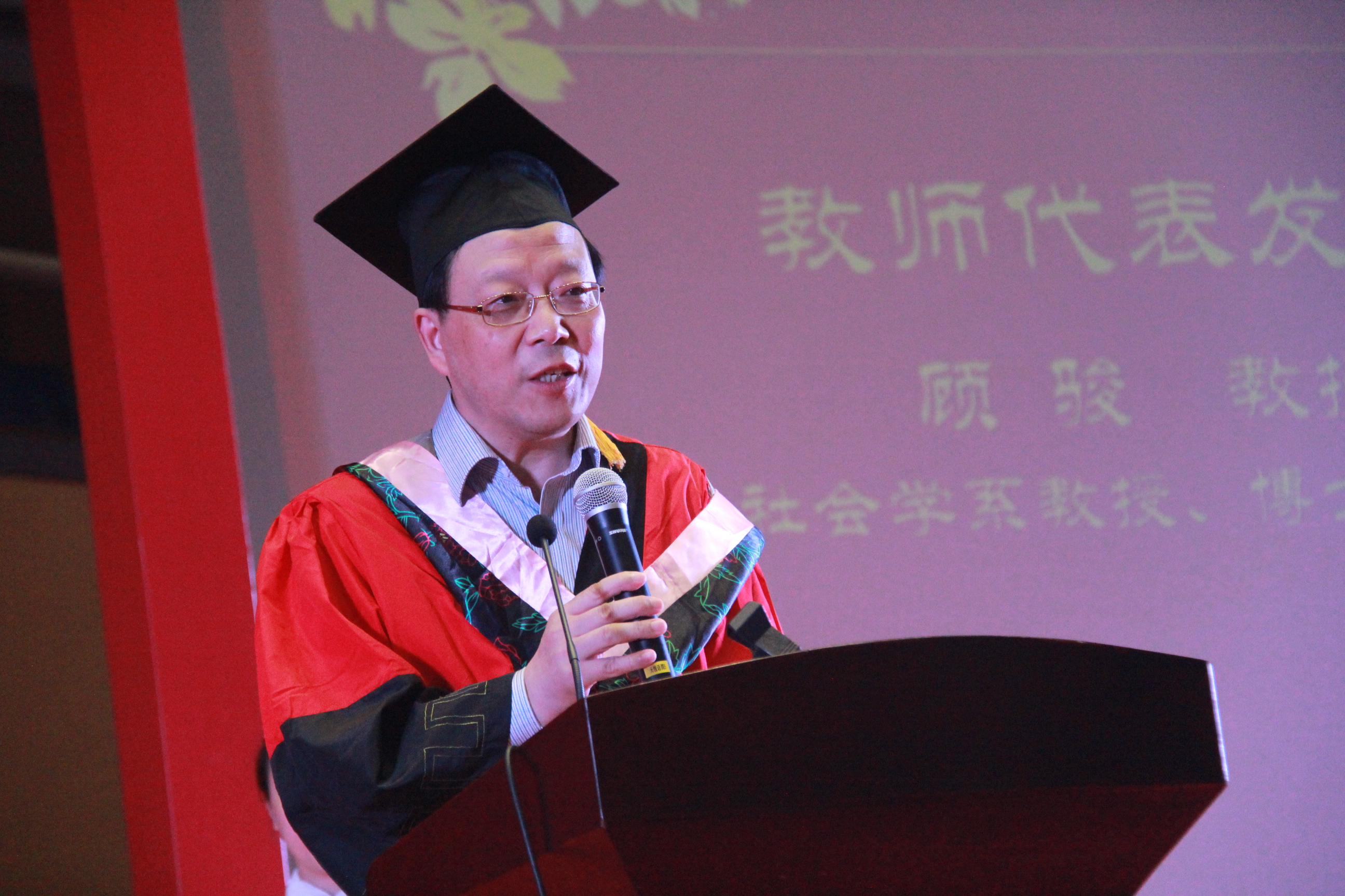 首先祝贺大家顺利毕业,祝贺同学们辛辛苦苦少则16年多则19、20年甚至更多更多的时间,你们现在终于可以毕业了。过去学社会学,今天开始就可以用社会学。尤其要祝贺刚才那位男同学,吃遍了太阳集团的大盆小碗,身材竟然还可以那么好。还要祝贺我们各位爸爸妈妈,20多年了,你们养育孩子不容易,今天的场合使你们看到孩子们终于可以自由飞翔了,以后你们更多的关心将是他们何时结婚生子。还要祝贺我们新来的同学,你们选择了很好的专业。三年或者四年后,这就是你们的场面。