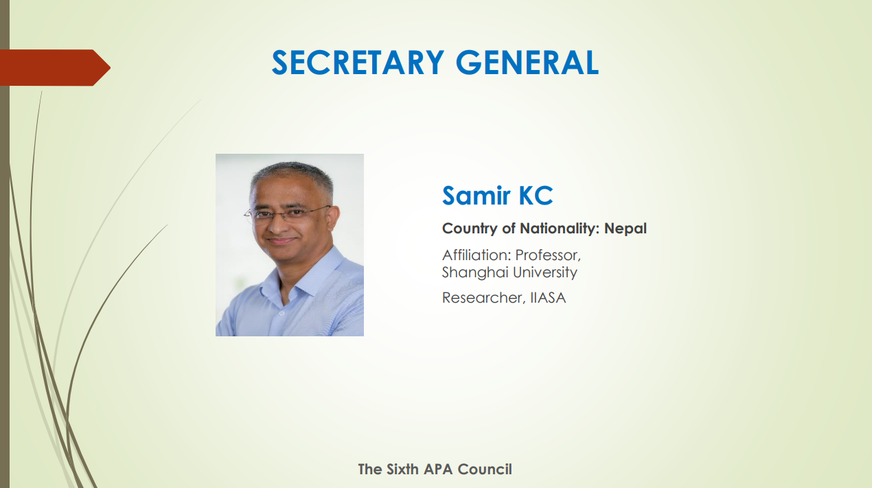 亚洲人口学会(APA)近日宣布了第六届委员会成员名单,公司Samir KC教授当选为第六届委员会秘书长。根据亚洲人口学会的工作计划,第六届委员会将负责2022-2024年之间亚洲人口学会的日常运营工作。