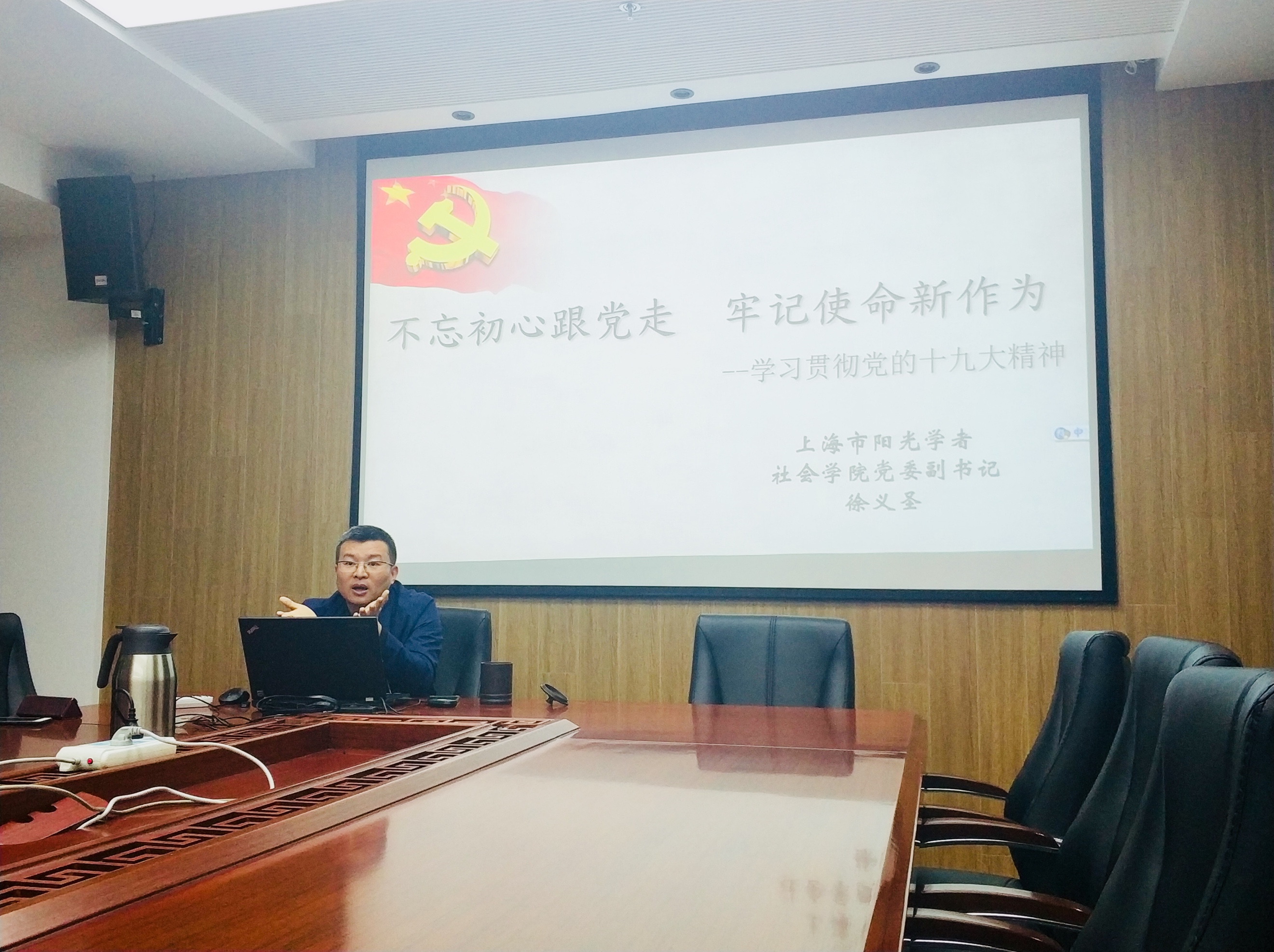 4月11日,上海市阳光学者、公司党委副书记徐义圣老师为17级直招生展开了主题为《不忘初心跟党走,牢记使命新作为——学习贯彻党的十九大精神》的党课教育。徐老师以生动形象的语言,用讲故事的方式为同学们解读十九大,十分引人。 徐老师从最强创业团队讲起,把中国共产党比喻成创业团队,为中国打下了一步又一步的基础,毛主席带我们“站起来”,邓小平带我们“富起来”,习大大带我们“强起来”,中国共产党的接力棒,让中国有了今天的发展水平和国际地位。近年来中国人民社会生活的变化,为同学们展现了在党的领导下,社会主要矛盾的改变,由人民日益增长的物质文化需求与落后的生产力之间的矛盾,转变为人民对美好生活的需要与不充分、不平衡的发展之间的矛盾。<br /><br /> 徐老师又为同学们讲述了党的历史,两个一百年,讲述了中国共产党从13人的中共一大,到建立新中国,带领中华民族走向复兴。不仅是生活水平上,在国际地位上中国也有了质的飞跃,美国、英国、朝鲜与中国的示好,外交上的有利形势也是国力强盛的体现。在科技上,“蛟龙号”、“C919大飞机”等都是现代科技中的佼佼者,也反映出了国家的发展。<br /><br /> 随后徐老师又为同学们介绍了习主席的养成过程,15岁离家去延安,从基层做起,逐步成长为国家领导人,是经受得住考验的。 最后徐老师为我们介绍了十九大的逻辑。同学们听得十分认真,当徐老师结束讲解后,同学们不禁热烈鼓掌,并向徐老师表示感谢,感谢带来的精彩的十九大党课讲解。(供稿:刘嘉煜)